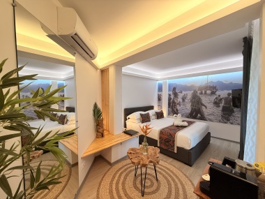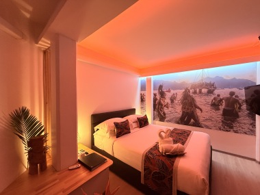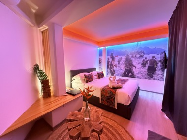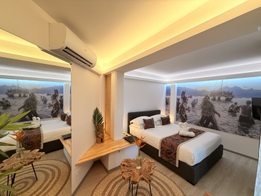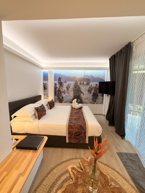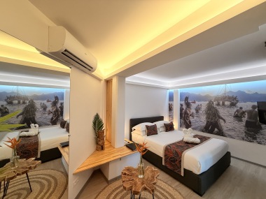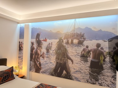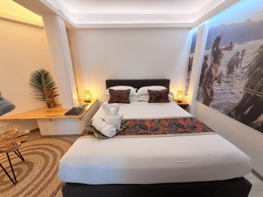 Nos chambres capturent l'esprit des îles Marquises avec une décoration immersive. Le mur en tête de lit, une photo saisissante d'une vallée marquisienne, transporte nos invités au cœur de cette beauté naturelle. Chaque détail, des motifs artisanaux aux teintes inspirées des paysages locaux, évoque l'héritage culturel riche de cet archipel.