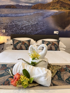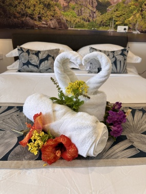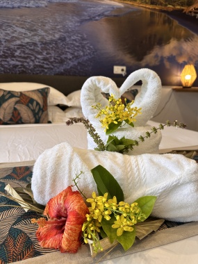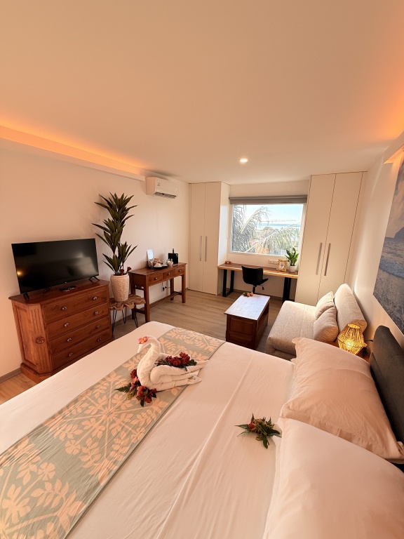 À seulement 5 min de l’aéroport de Faa’a et 10 min du centre de Papeete, notre lodge intimiste offre 3 chambres confortables avec salle de bain privative, climatisation et kitchenette. Check-in autonome, Wi-Fi et parking gratuits, petit-déjeuner sur commande et location de voiture sur place. Commerces et restaurants à proximité.