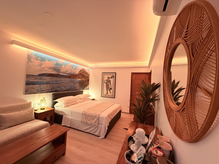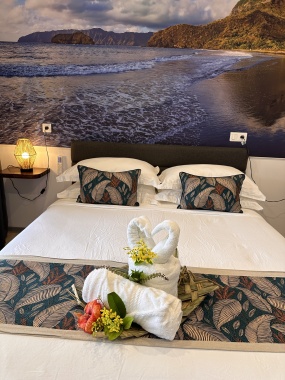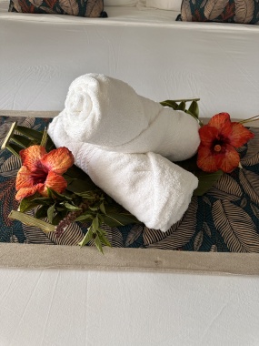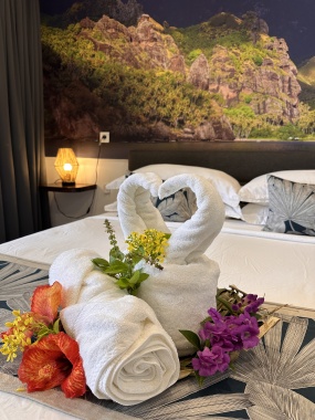 Chacune de nos trois chambres offre une expérience intime et confortable, dotée d'une salle de bain privative et de la climatisation pour un séjour agréable. De plus, une petite kitchenette est mise à disposition pour ceux qui souhaitent préparer un café matinal.